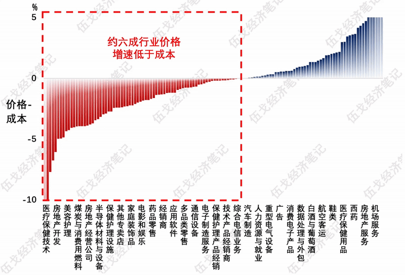 尽管“内卷”与微观市场竞争秩序等相关,但并非个别企业而是越来越多行业出现降价,并不断趋近成本,这倒更像是宏观经济现象。按上市公司数据测算,约六成行业的价格相对成本呈现下降。且相较2015年供给侧改革时期,上述现象的行业分布更为广泛。
