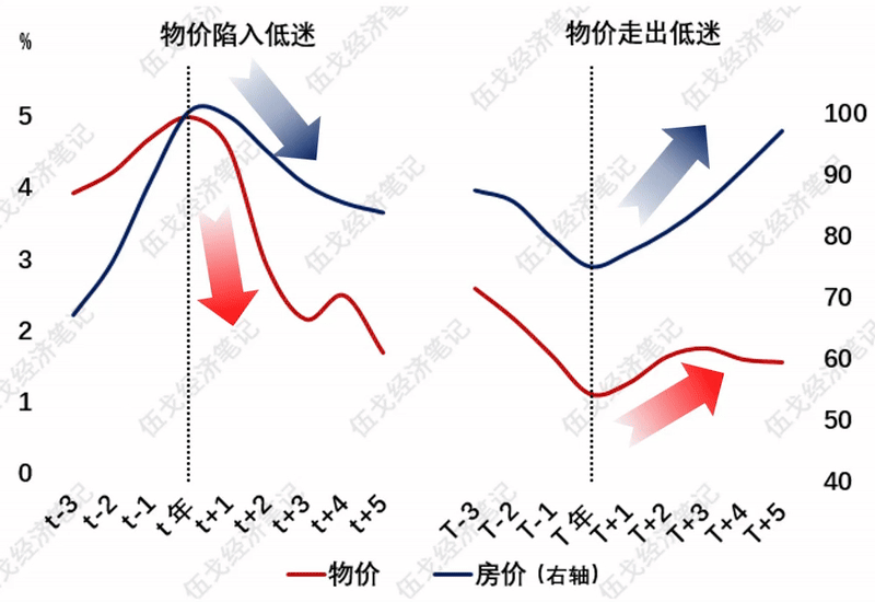 注:来自OECD国家房价大幅调整期间的数据。物价为GDP平减指数同比,房价为实际房价指数。