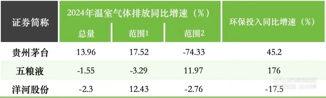 五粮液和洋河股份的碳排总量则同比下降,分别为-1.55%和-2.3%。